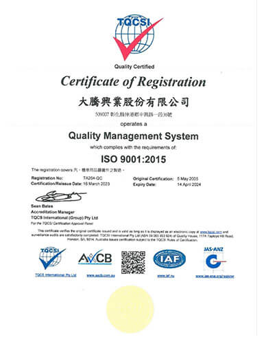 - Innovation and Technology R&D: We are committed to providing customers with top-notch quality products and services. In addition to our ISO-9001, 2000 certification, we are dedicated to implementing the ISO-TS16949 international automotive quality system to improve product and service quality stability.